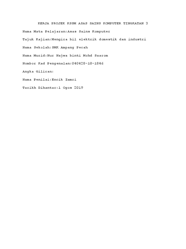 Kerja Projek Kssm Asas Sains Komputer Tingkatan 3 Pdf