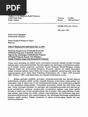 Surat Pekeliling Ikhtisas Bil 6 1985 Peraturan Pakaian Guru Pdf