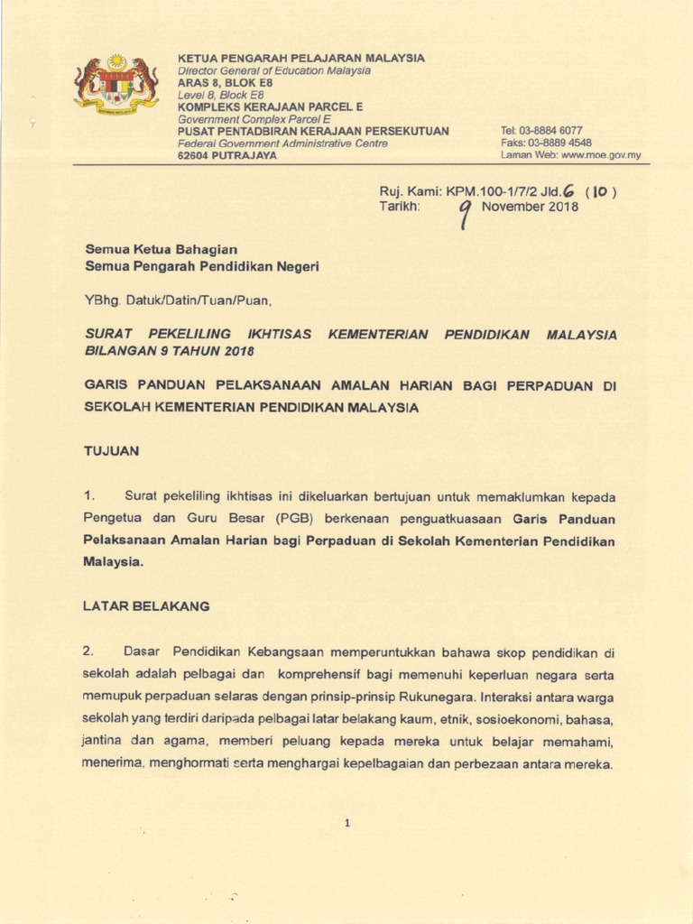 Surat pekeliling ikhtisas kementerian pendidikan malaysia bilangan 1 tahun 2019 panduan pengurusan rekod sistem kehadiran murid di sekolah kementerian pendidikan malaysia Surat pekeliling ikhtisas ini boleh dimuat turun melalui pautan berikut. Pelaksanaan Pemakaian Kasut dan Stoking Berwarna Hitam oleh Murid di Sekolah Kementerian Pendidikan Malaysia. Pengurusan Kewangan Bagi Peruntukan Bantuan Persekolahan Umum Kementerian Pendidikan Malaysia pdf Muat Turun Surat Pekeliling 339 MB.