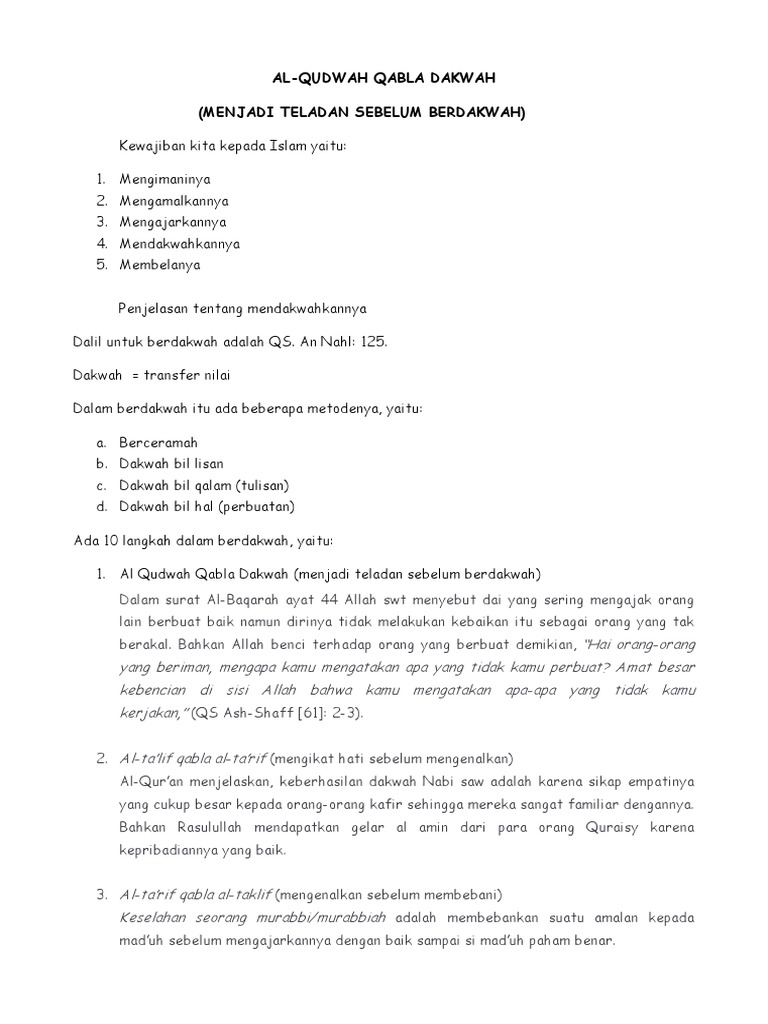 Justeru itu kajian ini berusaha. Poin 3 lebih dikenal dengan sebutan dawah bil hal dan dawah bil qudwah. Sedangkan kata al-Haal berarti hal atau keadaan.